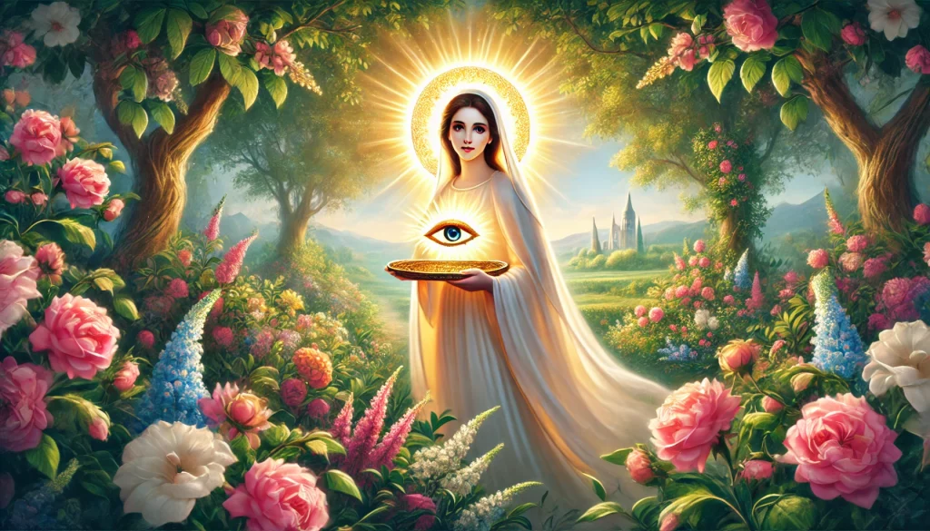 Oh, Santa Lucía, virgen y mártir gloriosa, protectora de los que sufren por la pérdida de la vista, te invocamos con fe y devoción.